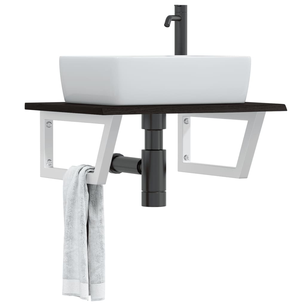 Den væghængte hylde kan monteres sikkert på væggen. Det er en elegant og pladsbesparende løsning til dit badeværelse. Robust og langtidsholdbar: Denne hylde har en stålstruktur og en top i massivt egetræ, så den er robust, stabil og langtidsholdbar. Pladsbesparende: Hylden giver rigelig med plads til opbevaring af cremer og andre småting. Du kan ophænge håndklæder eller andre ting for at spare plads takket være den trapezformede facon. Brugervenlig: Takket være de forborede huller kan hylden monteres i venstre side, højre side eller i midten. Der er forborede huller i holderen, så den kan nemt monteres på væggen. Mange anvendelser: Den har et moderne design, og den giver ekstra plads til forskellige typer badeværelser. Godt at vide: Skruer medfølger ikke. Du kan købe skruer separat baseret på oplysningerne nedenfor. Vægmontering: 2 M8-ekspansionsskruer per beslag Trætop: 2 M5x18 skruer (T = 2) eller 2 M5x20 skruer (T = 2,5/4 cm) per beslag Træ er et naturligt produkt, så der kan forekomme knaster og ufuldkommenheder, så vi fylder med knastfyld for et flot look. Top: Farve: Mørkebrun Materiale: Massivt egetræ med en mørk finish Mål: 60 x 50 x 2 cm (L x B x T) Hyldebeslag: Farve: Hvid Materiale: Stål Mål, hyldebeslag: 20 x 45 cm (B x L) Mål, rør: 3 x 3 cm (B x L) Form: Trapez Bærekapacitet: 100 kg Afstand, monteringshuller: 60 mm Bordpladehullets afstand til kanten er 100 mm i hver side Med 2 huller til vægmontering og 2 holder til bordplademontering Skruer medfølger ikke Montering påkrævet: Ja Pakken indeholder: 1 x bordplade 2 x hyldebeslag