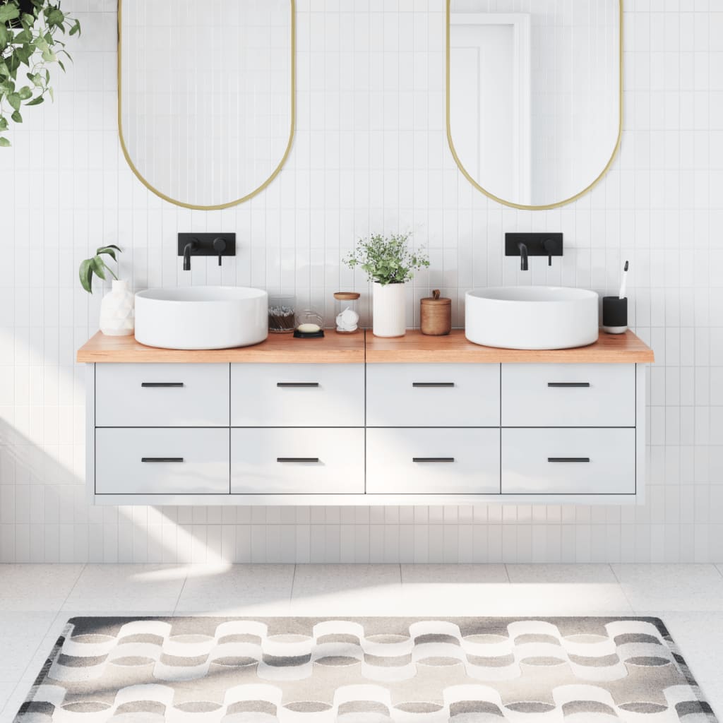 vidaXL bordplade til badeværelse 160x60x(2-4) cm massivt træ lysebrun 964,00 kr.vidaXL bordplade til badeværelse 180x30x(2-4) cm massivt træ lysebrun