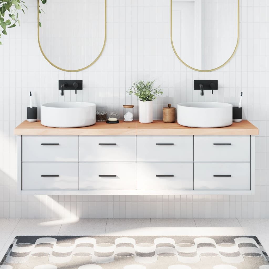 vidaXL bordplade til badeværelse 180x30x(2-4)cm massivt træ ubehandlet 557,00 kr.vidaXL bordplade til badeværelse 180x30x(2-6)cm massivt træ ubehandlet
