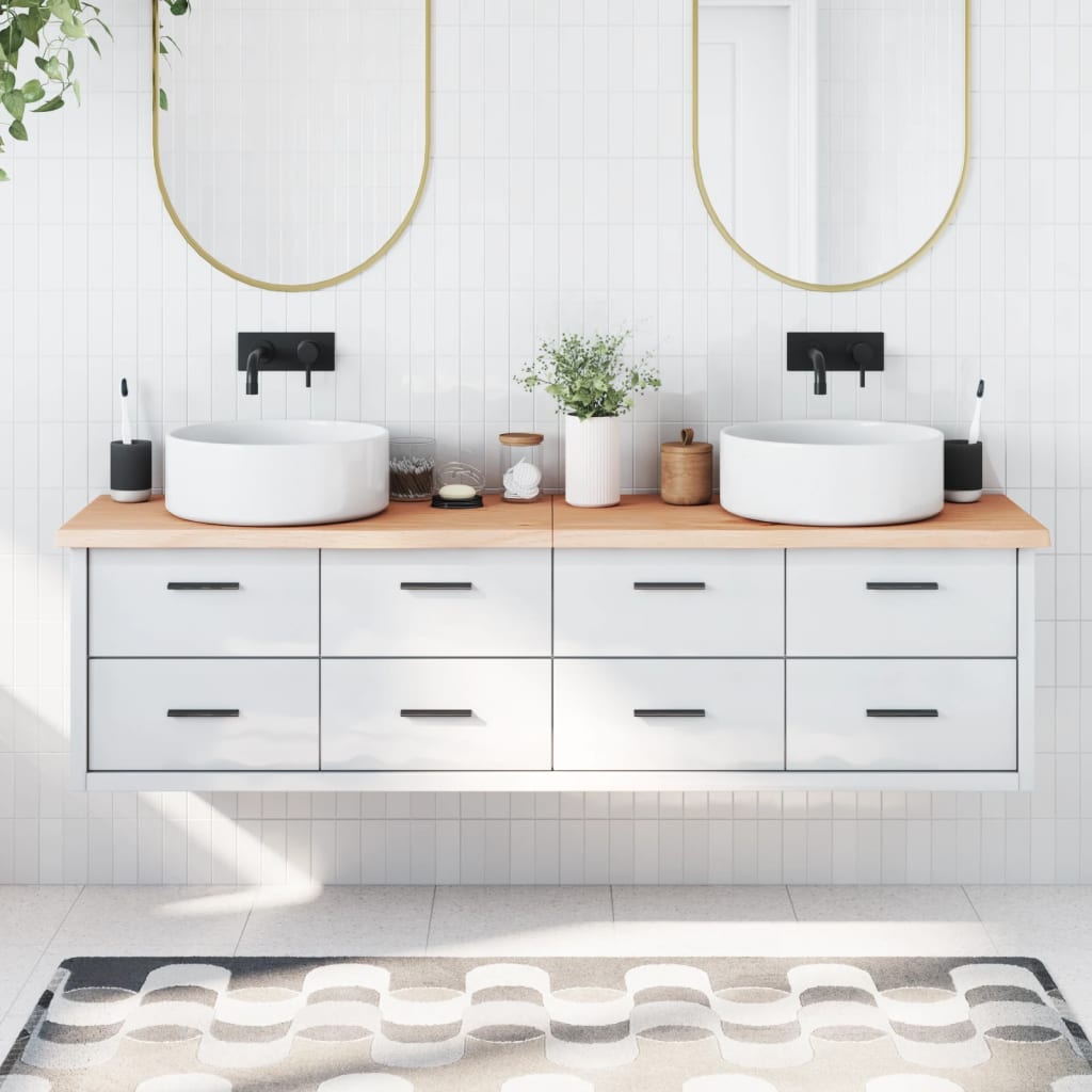 vidaXL bordplade til badeværelse 180x60x(2-6)cm massivt træ ubehandlet 805,00 kr.vidaXL bordplade til badeværelse 180x50x(2-4)cm massivt træ ubehandlet