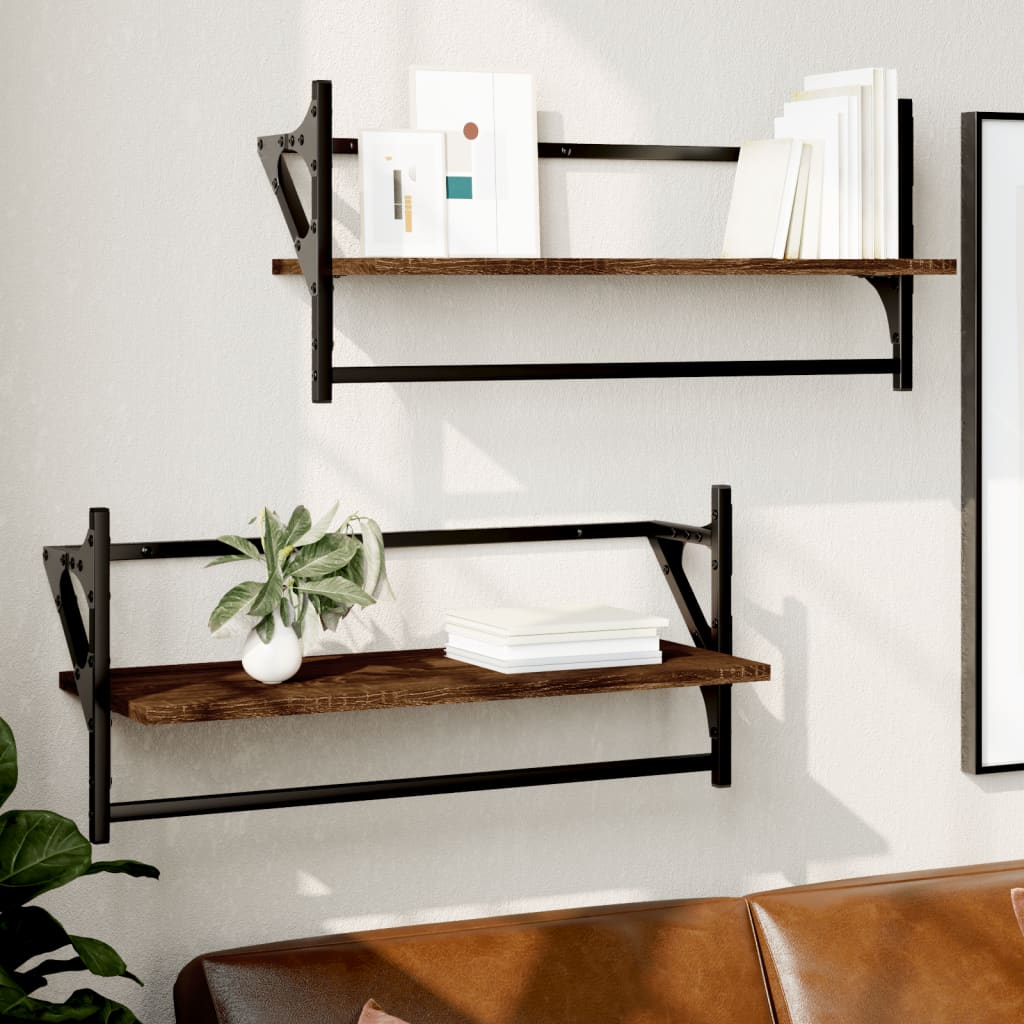 vidaXL væghylder med stænger 2 stk. 65x25x30 cm brun egetræsfarve